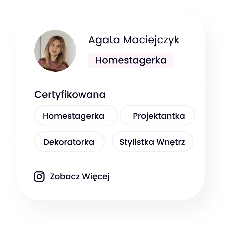 Jestem certyfikowaną homestagerką, projektantką i stylistką wnętrz. Od lat pomagam moim klientom odkrywać potencjał ich przestrzeni, tworząc wnętrza pełne harmonii, charakteru i funkcjonalności. Moja pasja do pięknych wnętrz oraz wieloletnie doświadczenie sprawiają, że każdy projekt to wyjątkowa podróż, która kończy się efektem „wow”. Usługi Home Stagingu świadczę na terenie Krakowa.
